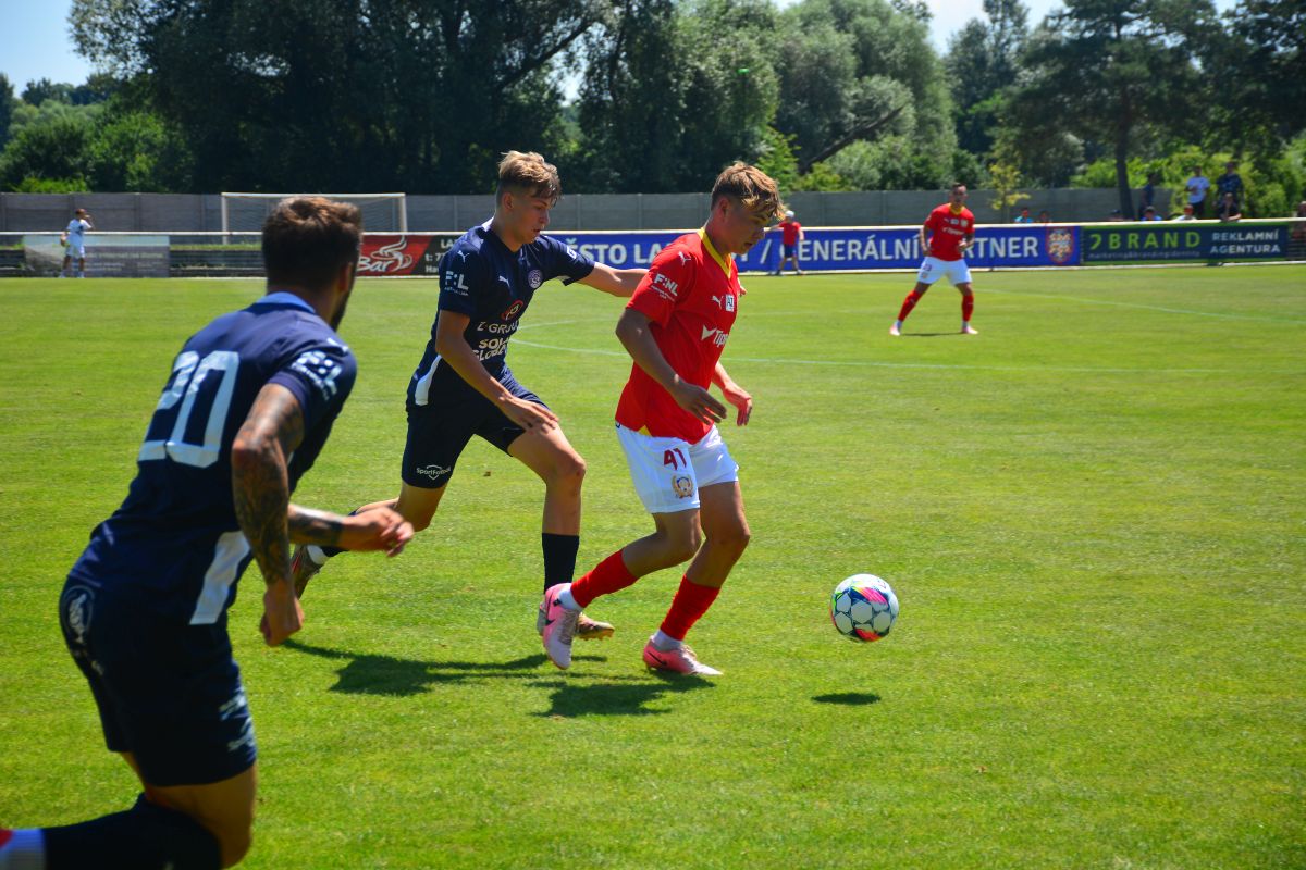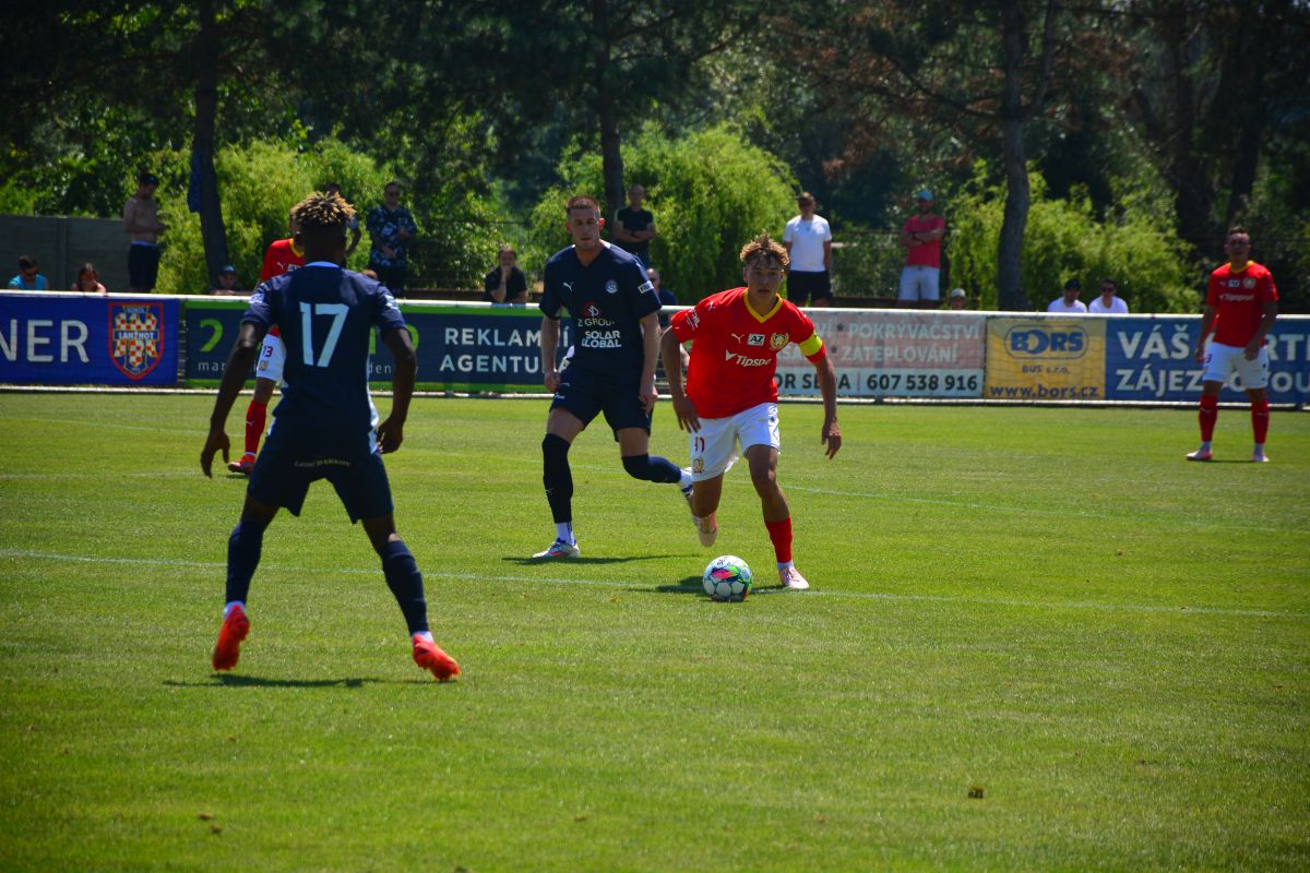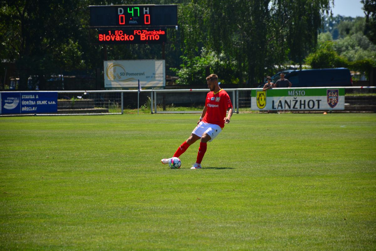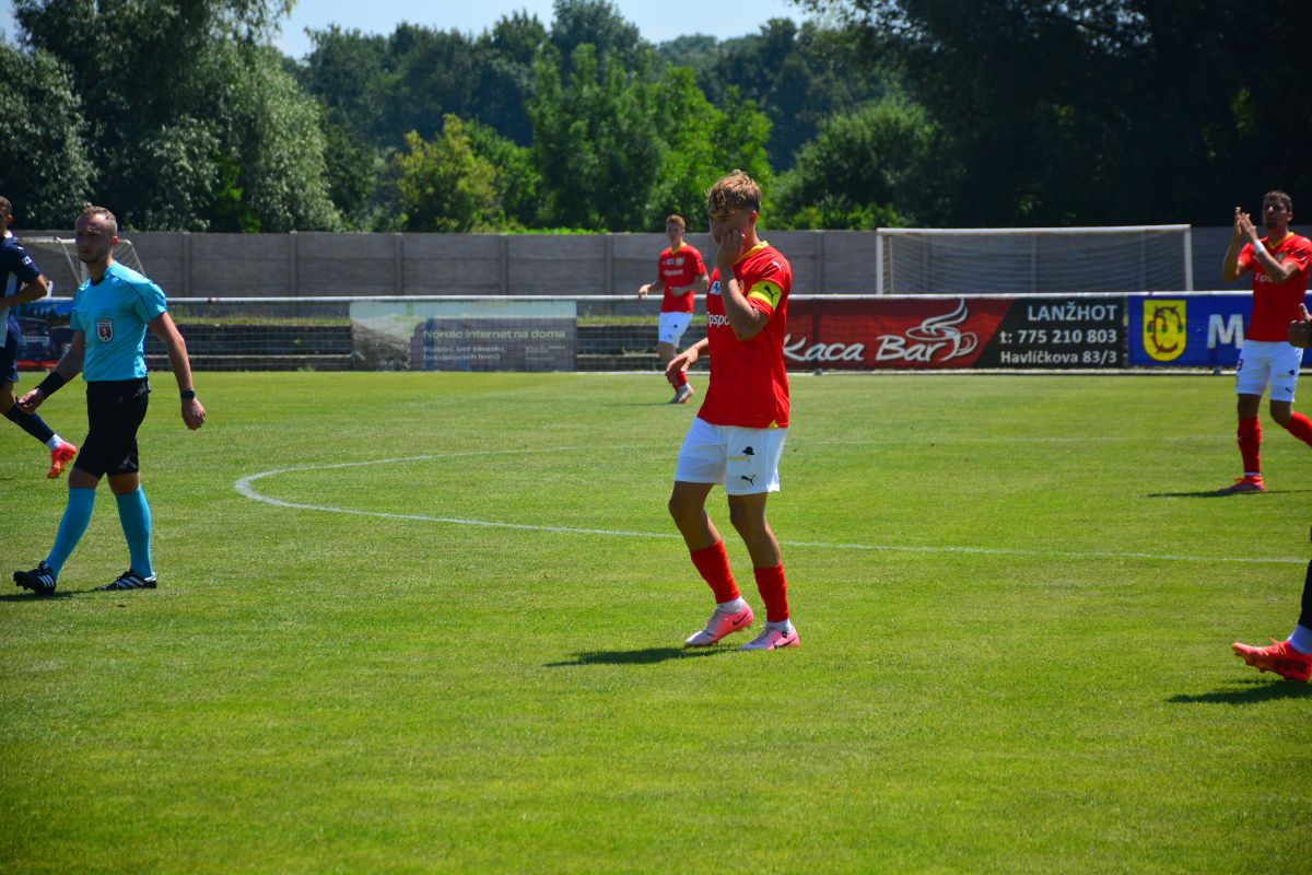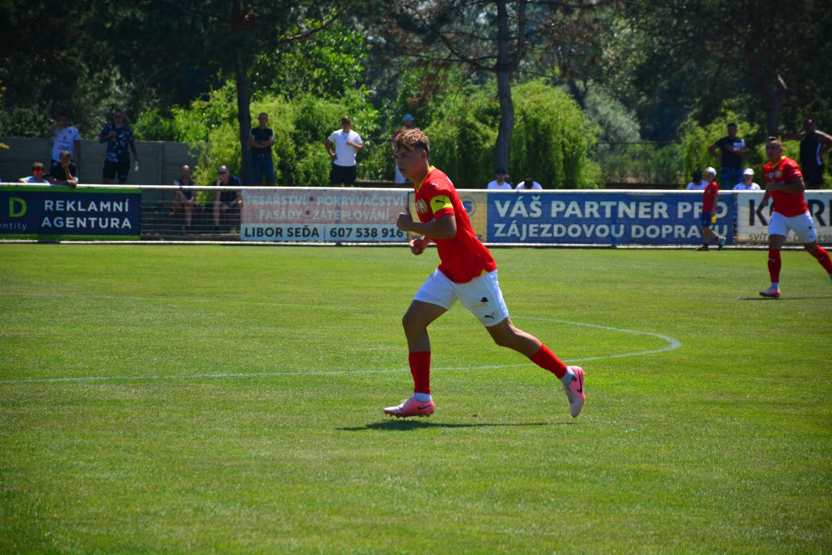 A co se samotné hry týče? „Bylo to strašně náročné. Oproti dorostu je to velký rozdíl, všechno je rychlejší a náročnější. A počasí tomu moc nepomáhalo,“ přiznal syn bývalého hráče Zbrojovky a reprezentace. Jak už je zvykem, navlékl přitom také kapitánskou pásku.