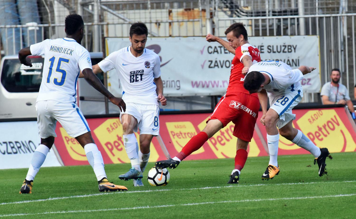 B R N O – Páté kolo nejvyšší české fotbalové soutěže přineslo první plný bodový zisk pro Brněnskou Zbrojovku. Brňané si počínali od úvodních minut lépe než výběr pražské Sparty a po zásluze vyhráli první poločas. Ve druhém dokázali přidat další branku a i přes vyloučení a tlak hostí v závěru dokázali vybojovat vítězství.