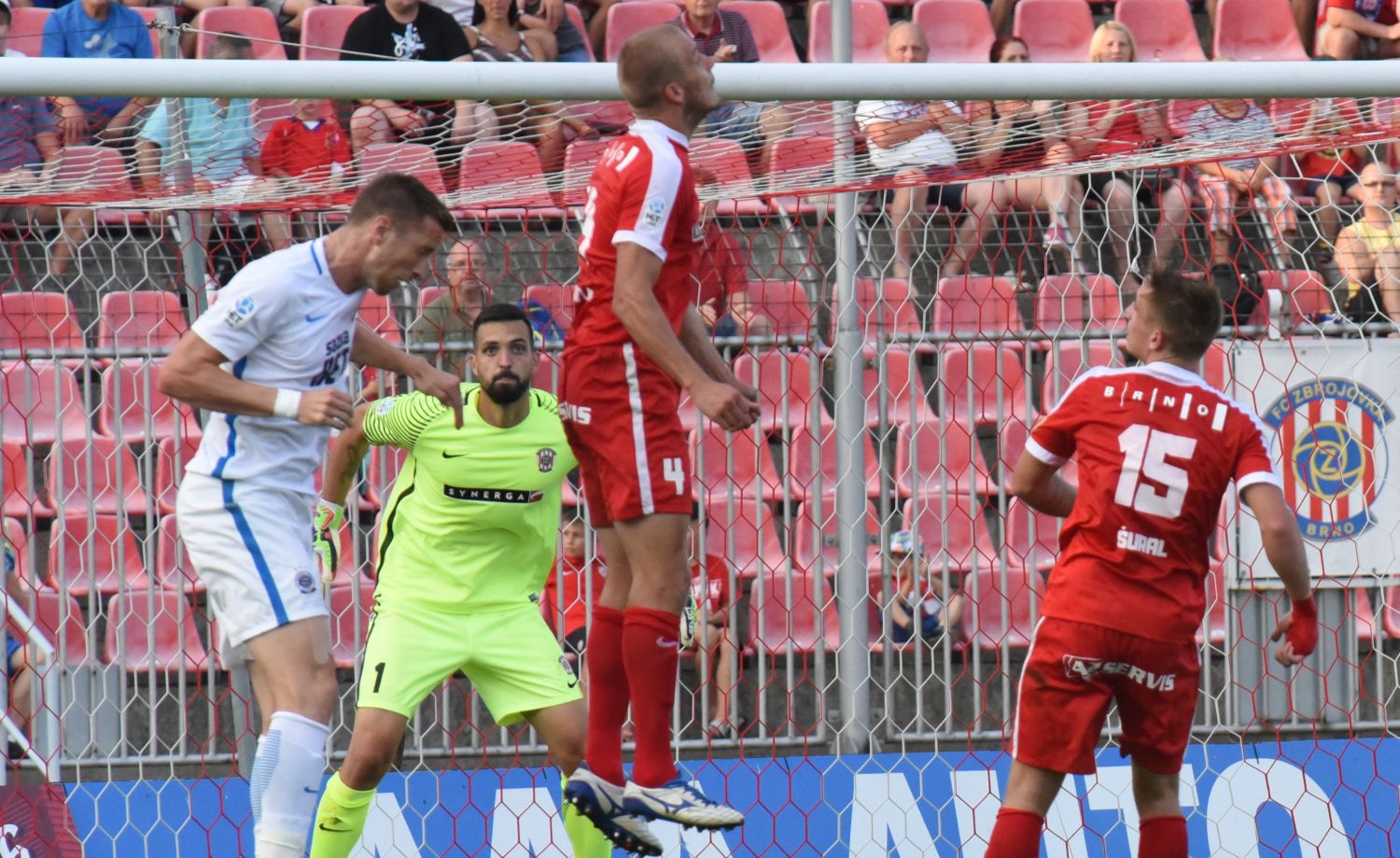 Na druhé straně mohli udeřit Pražané, centr z volného kopu propadl na zadní tyč ke Costovi, ale jeho hlavička nebyla pro Melichárka problémem a brněnský kapitán míč zkrotil. První branky se dočkali diváci na stadiónu v Králově Poli ve 23. minutě, když si na volný kop Tomáše Pilíka naskočil Jan POLÁK a s dopomocí hostujícího Šurala poslal míč za záda brankáře Sparty!