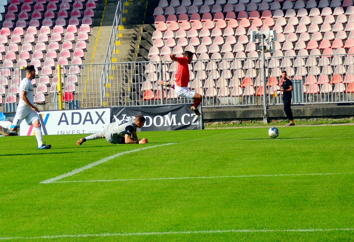Po úvodních minutách oťukávání byli daleko aktivnější fotbalisté Zbrojovky, k dispozici měli několik rohových kopů i nadějných situací. Vážněji zahrozili až po pětadvaceti minutách, kdy dalekonosnou ránu jednoho z fotbalistů Zbrojovky vyrazil Odráška před sebe. U míče byl jako první David Pavlík, kterého gólman hostů skvěle vychytal a druhá dorážka šla do tyče.