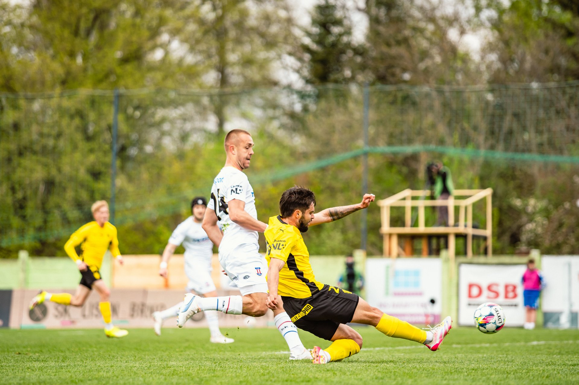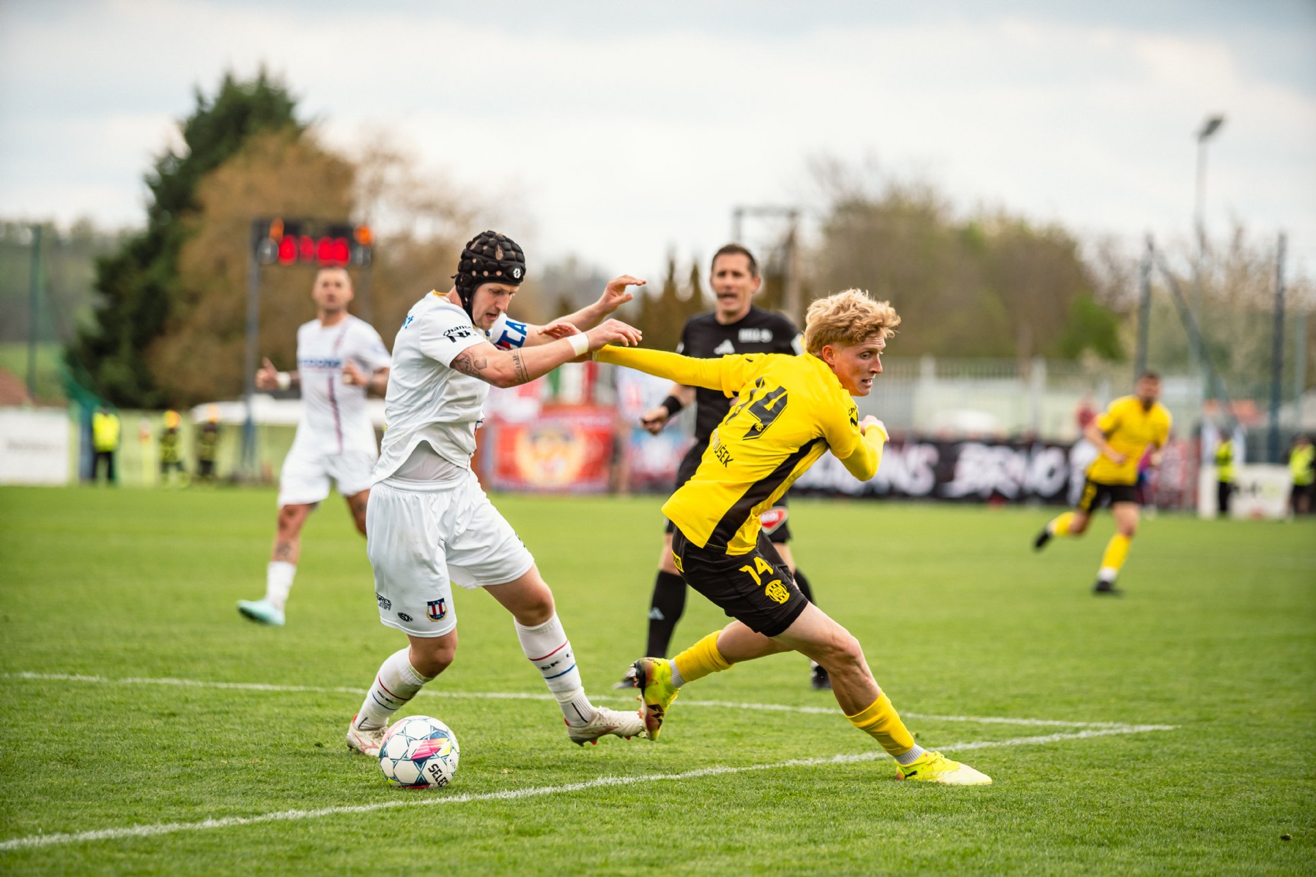Po skvělé úvodní půli hostů sáhla Líšeň ke trojitému střídání směrem do druhé pětačtyřicetiminutovky. Brzy se navíc dočkala snížení, když Granečný ve vápně fauloval Otrísala a byla nařízena penalta, kterou proměnil střelou k tyči Jan Silný a bylo to 1:4.