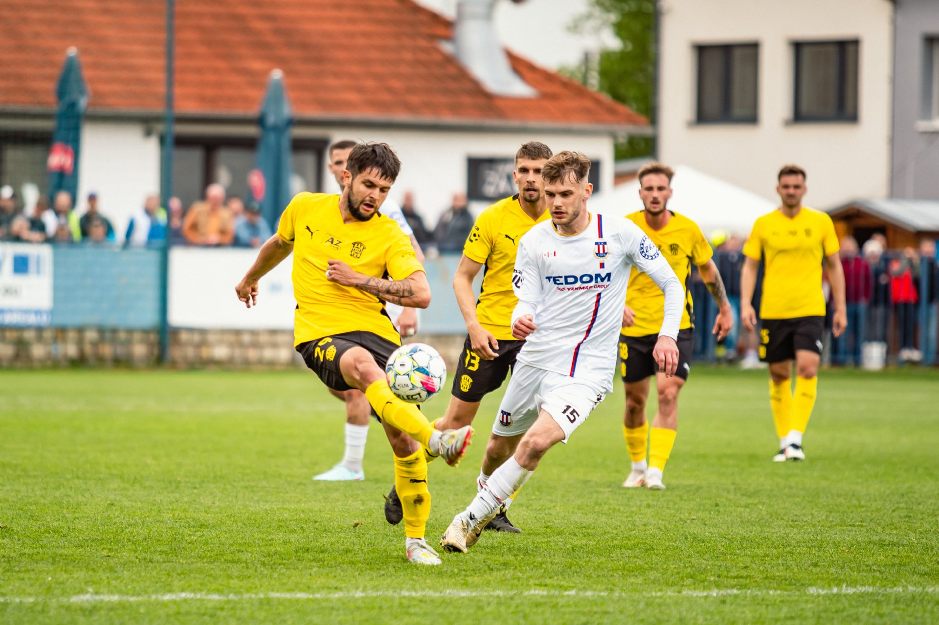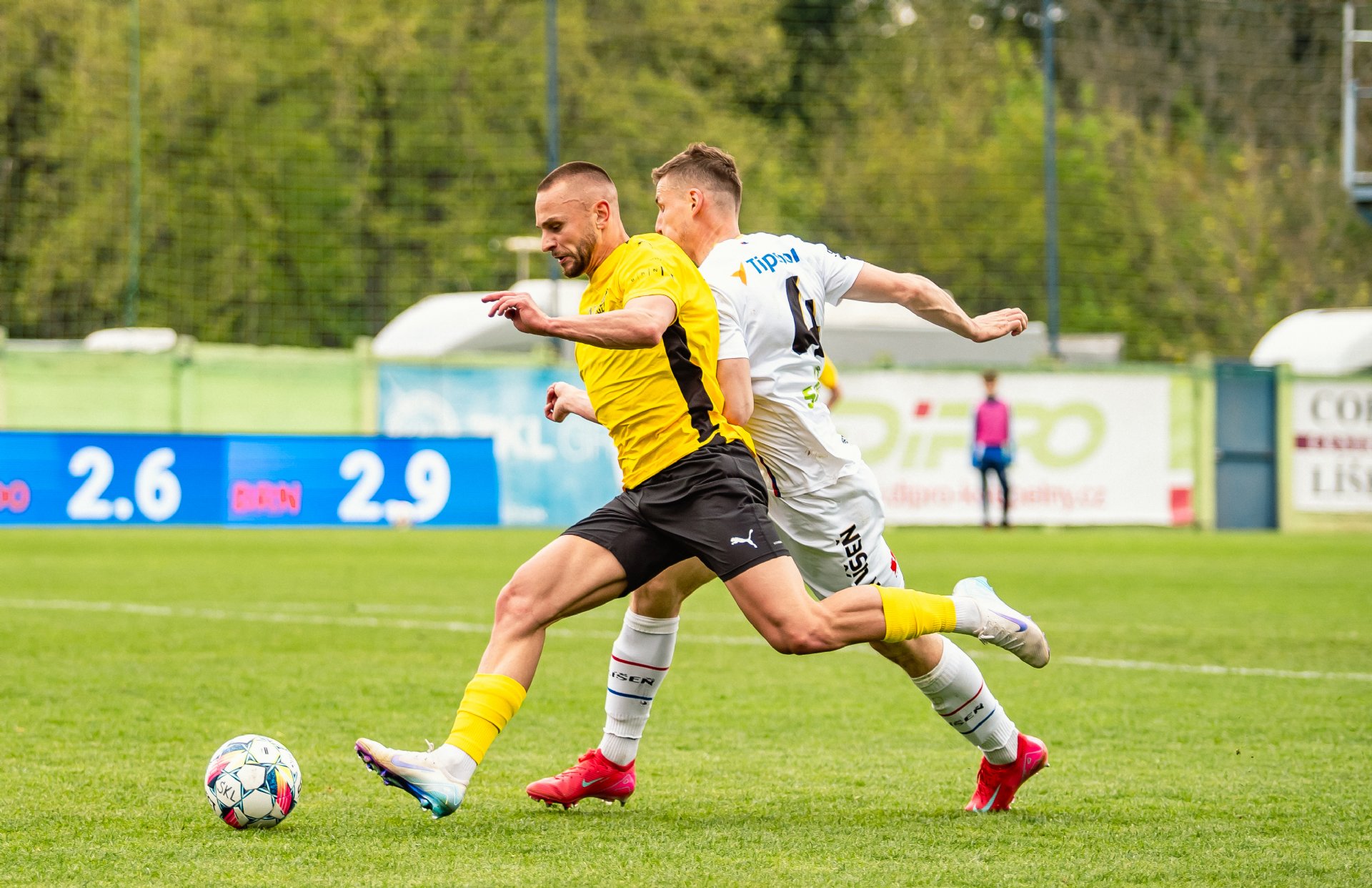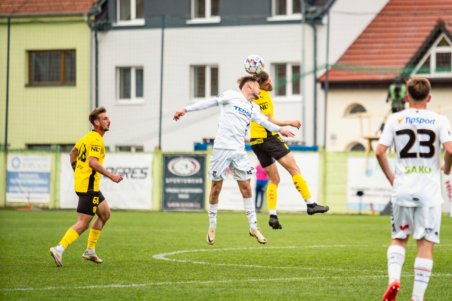 Zbrojovka měla tříbrankový náskok a bylo jí plné hřiště. Domácí se k náznaku šance osmělili až po půlhodině, centr Pospíšila našel hlavu nabíhajícího Potočného, ovšem jeho hlavičku Hrdina lapil. Šest minut před poločasem pak svůj skvělý výkon korunoval Patrik Žitný, který ke dvěma trefám přidal i asistenci. V rychlé akci středem vysunul kolmicí Jiřího Texla a ten odstřelil Vajnera k pravé tyči - 0:4.