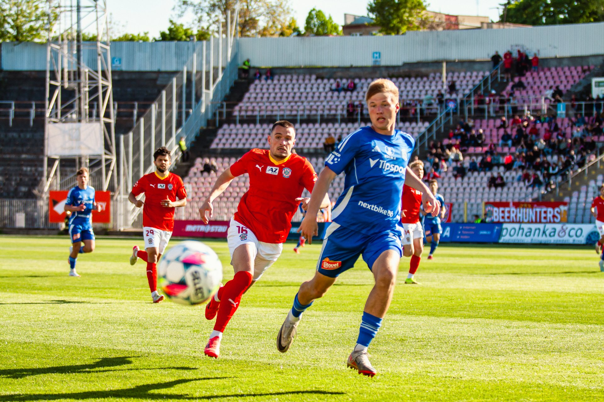 Zbrojovka vstoupila do utkání aktivně a skóre se mohlo měnit hned v prvních minutách, jen kdyby Vachoušek v úniku dokázal lépe obstřelit Stoppena. Hned o chvíli později vyslal Žitný do volného prostoru Kutíka, který z první krásně hledal před bránou nabíhající dvojici Vachoušek - Kronus, z nichž však ani jeden na míč nedosáhl. V závěru úvodní čtvrthodiny se Tadeáš Vachoušek znovu dostal za hostující obranu, ale přihrávku od Nového dobře nezpracoval a sám se připravil o velkou šanci. A byl to znovu Vachoušek, kdo tentokrát hlavou prověřil Stoppena ve 23. minutě. I tentokrát ale zůstal stav neměnný.