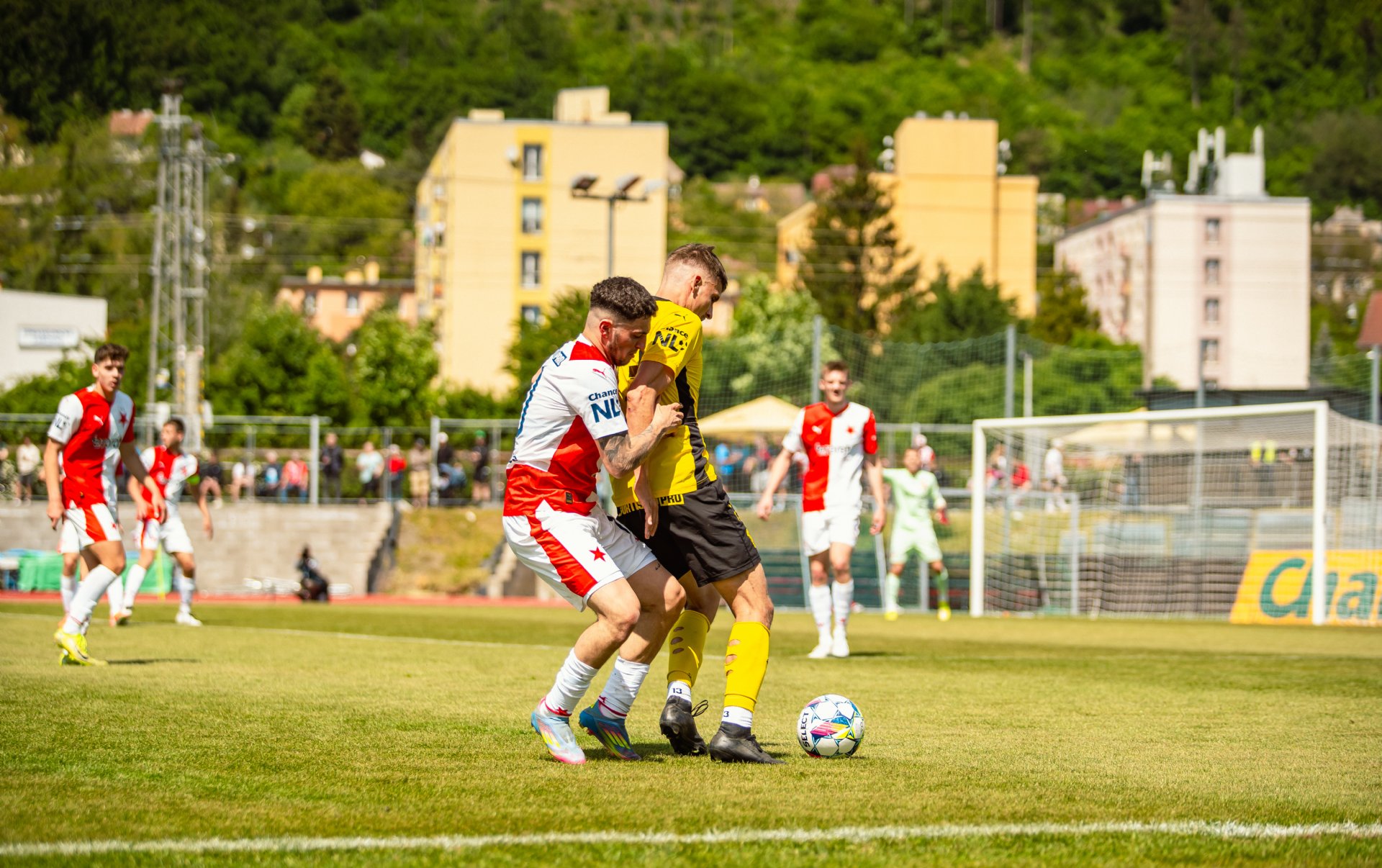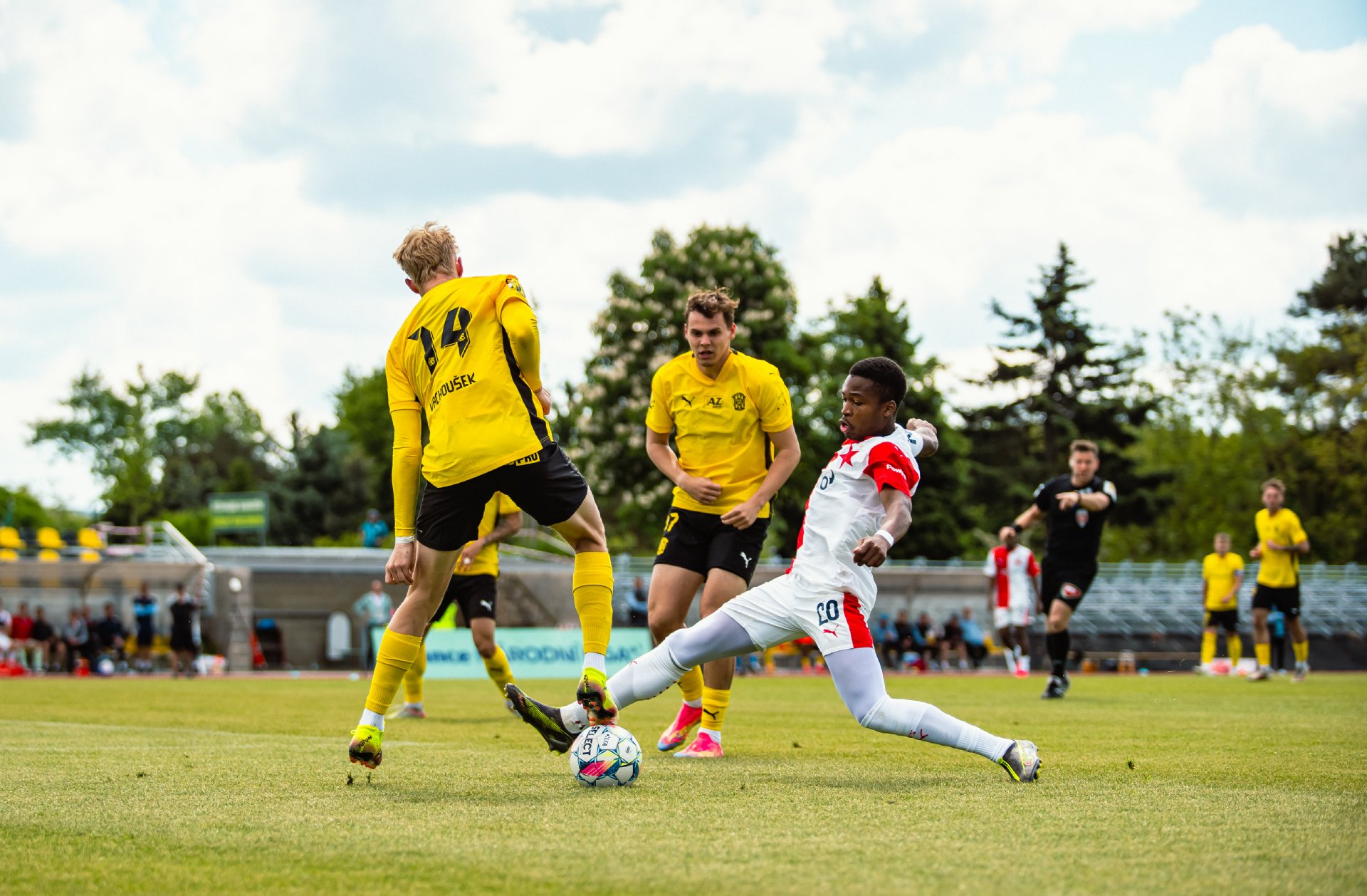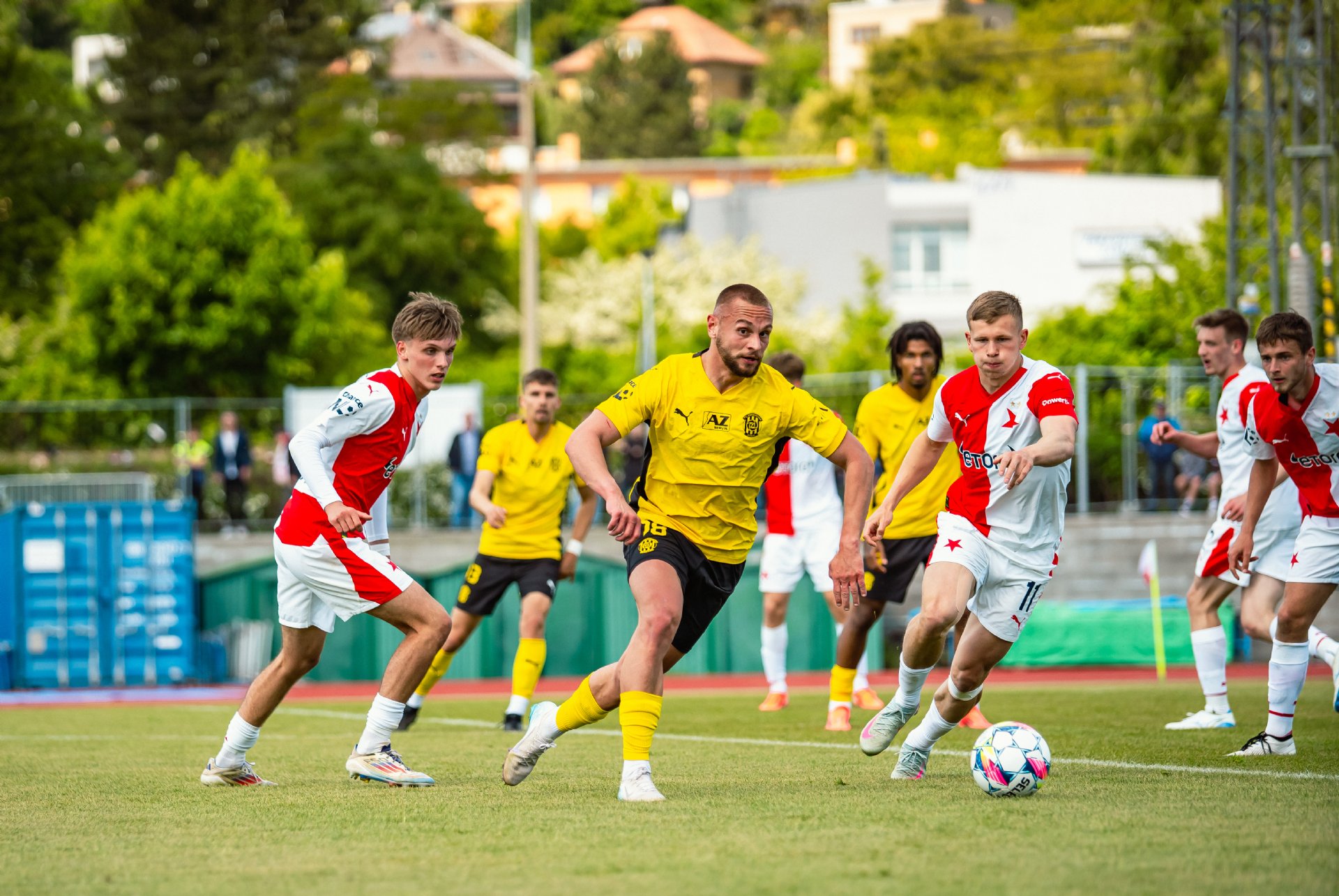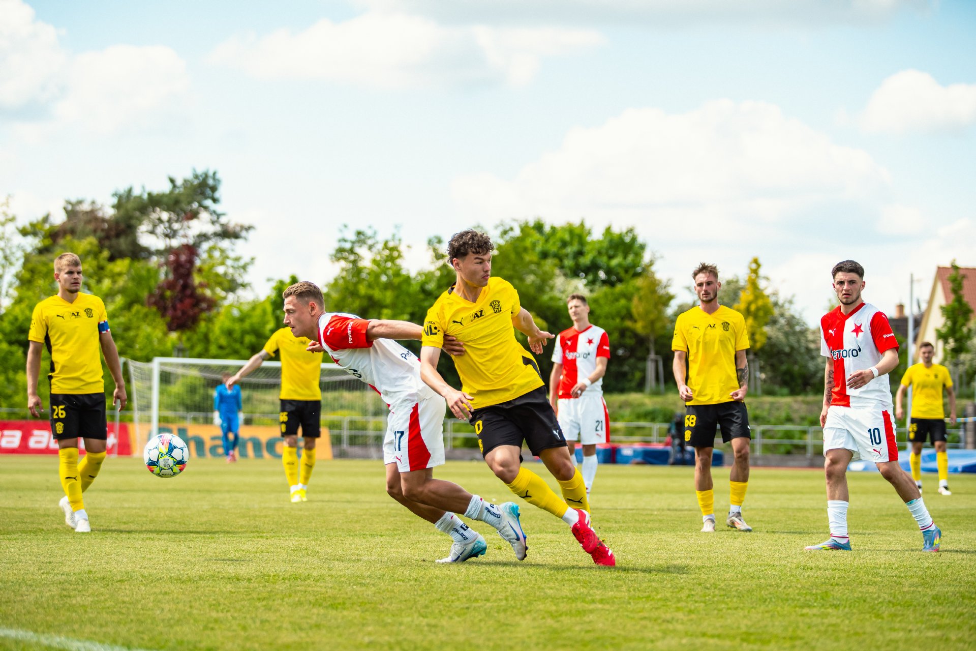 Rezerva Slavie, notně posílená o hráče A-týmu, vstoupila do utkání o něco aktivněji, pokusy Teaha a Perišiče ale Hrdinu neohrozily a s Botosovou nebezpečnou střílenou přihrávkou před bránu si brněnský gólman poradil. První půle se nesla především v duchu boje o střed hřiště a šancí bylo poskrovnu. Zbrojovka se do zakončení dostala až v 37. minutě, kdy centr Janetzkého zakončoval hlavou vedle Hofmann.