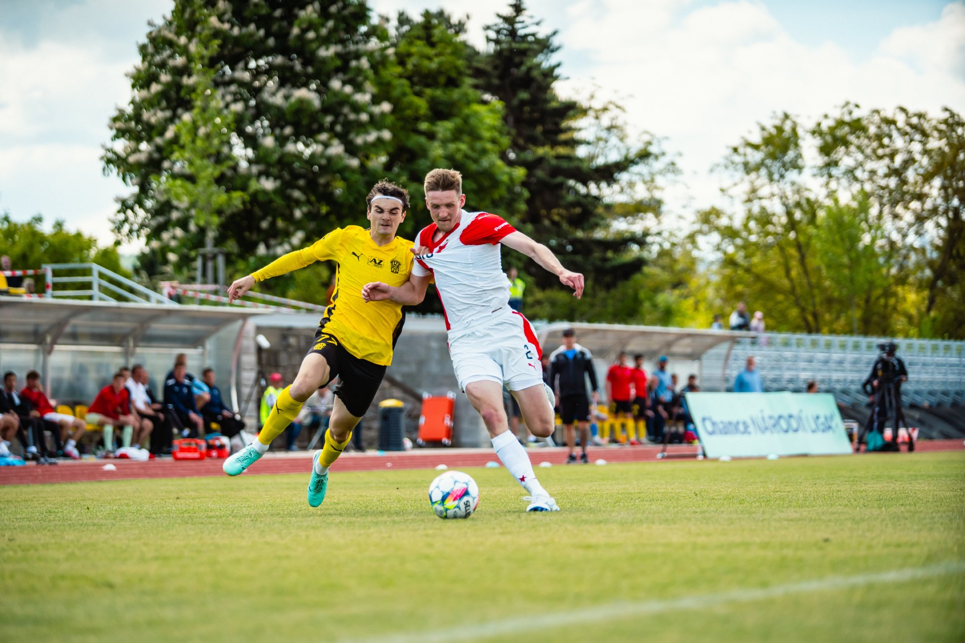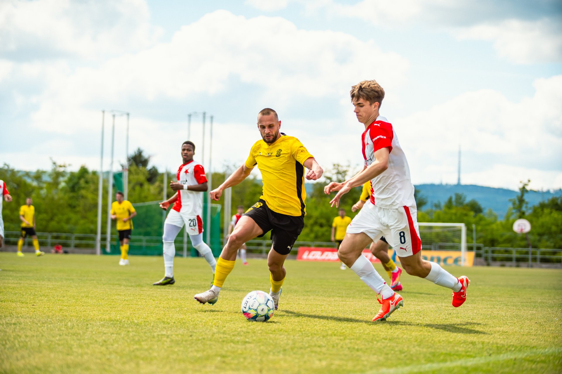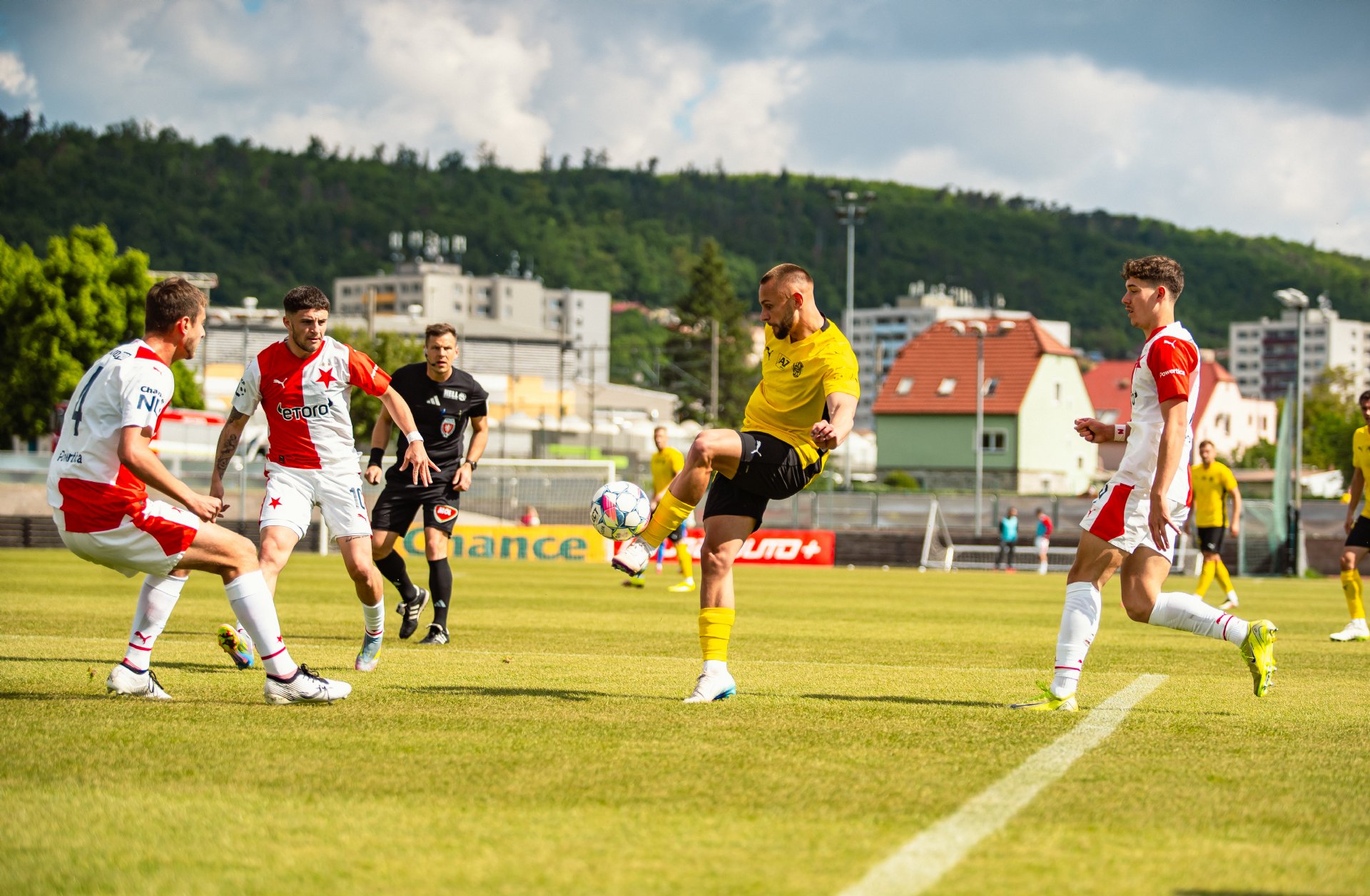 Rezerva Slavie, notně posílená o hráče A-týmu, vstoupila do utkání o něco aktivněji, pokusy Teaha a Perišiče ale Hrdinu neohrozily a s Botosovou nebezpečnou střílenou přihrávkou před bránu si brněnský gólman poradil. První půle se nesla především v duchu boje o střed hřiště a šancí bylo poskrovnu. Zbrojovka se do zakončení dostala až v 37. minutě, kdy centr Janetzkého zakončoval hlavou vedle Hofmann.