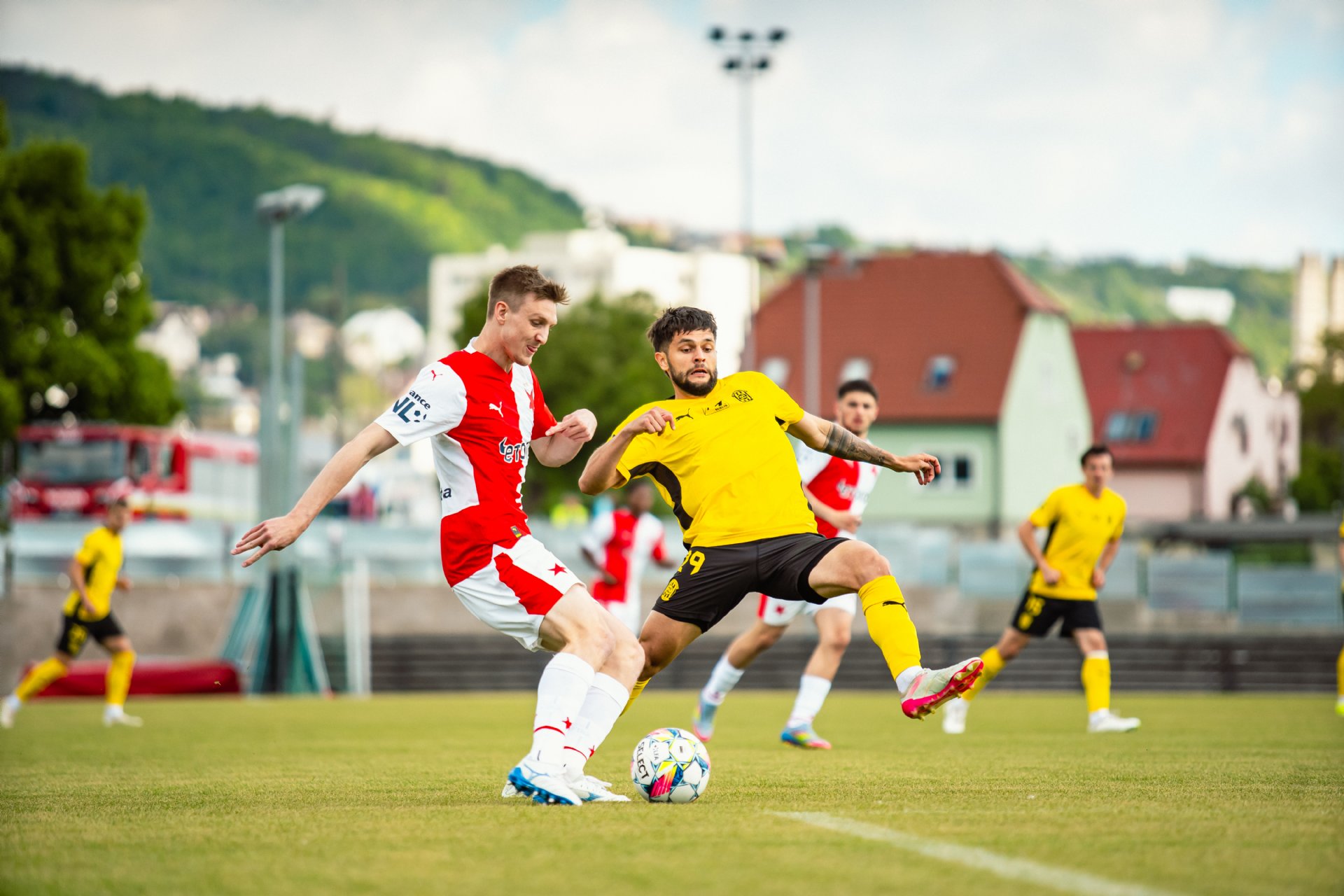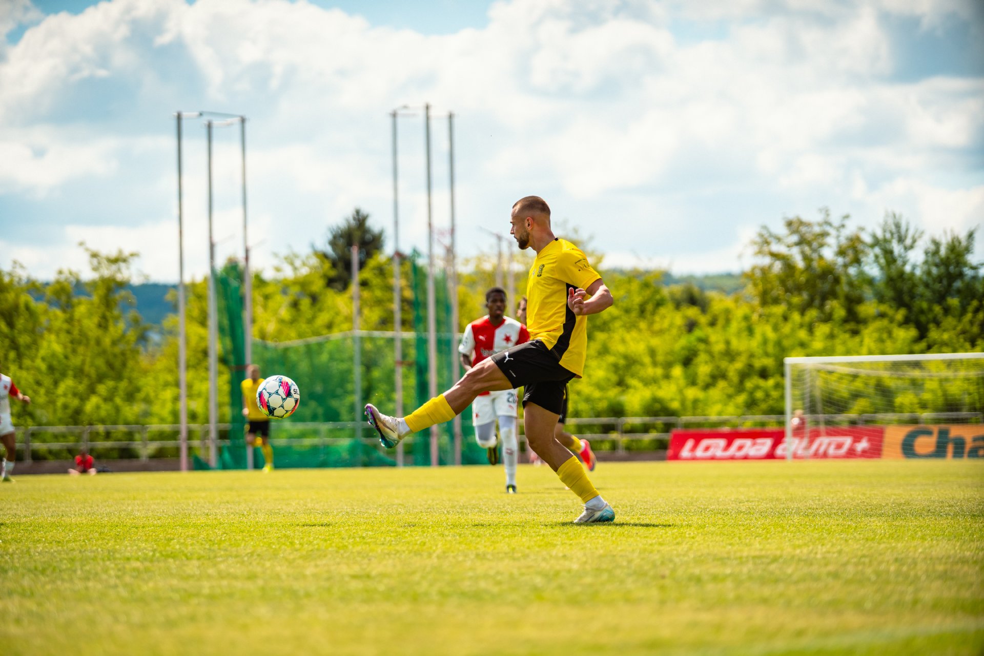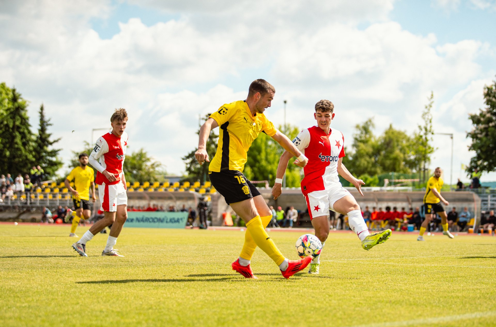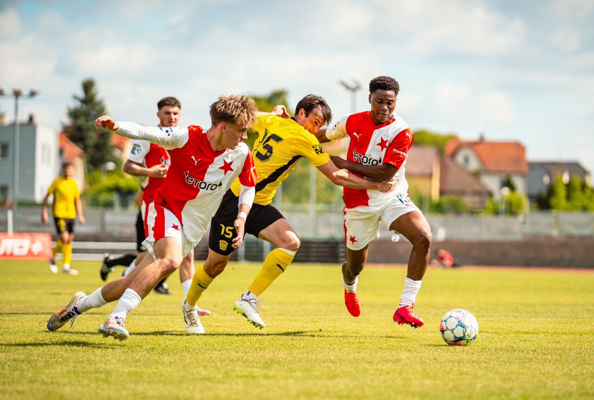 Rezerva Slavie, notně posílená o hráče A-týmu, vstoupila do utkání o něco aktivněji, pokusy Teaha a Perišiče ale Hrdinu neohrozily a s Botosovou nebezpečnou střílenou přihrávkou před bránu si brněnský gólman poradil. První půle se nesla především v duchu boje o střed hřiště a šancí bylo poskrovnu. Zbrojovka se do zakončení dostala až v 37. minutě, kdy centr Janetzkého zakončoval hlavou vedle Hofmann.